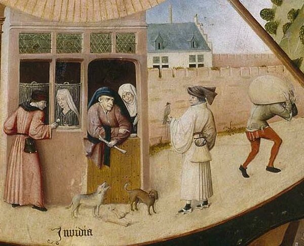 Kadedust (invidia) kujutav detail Hieronymus Boschi maalilt „Seitse surmapattu ja neli viimset asja“, u 1500. Allikas: Wikimedia Commons