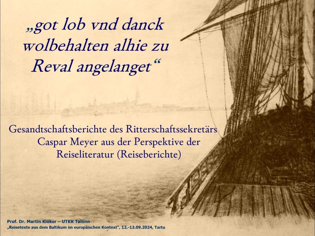 12.-13. septembril 2024 toimub Tartus XIII balti kirjakultuuri sümpoosion „Reisetexte aus dem Baltikum im europäischen Kontext“ (sümpoosioni koduleht), keskendudes Baltikumist reisijate reisitekstidele läbi aegade. Sümpoosionil peab projekti juhtivteadur Martin Klöker ettekande „Gesandtschaftsberichte von Caspar Meyer aus der Perspektive der Reiseliteratur (Reiseberichte)“, mis kõneleb Eestimaa rüütelkonna sekretäri Caspar Meyeri lähetusaruannetest reisikirjanduse perspektiivist.